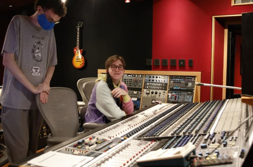 Everyone stayed masked unless they were in the iso booth or socially distanced in the live rooms playing instruments or singing!